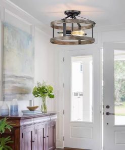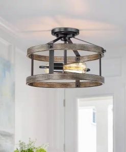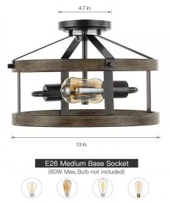 The Round 13-inch Metal Wood Farmhouse 2-Light Ceiling Lamp – Semi-Flush Mount has a unique blend of industrial with modern rustic and traditional elements. The natural iron and distressed faux wood finish are combined flawlessly to make this a very interesting light. Add the clear glass and you get an attractive piece that is sure to impress. The Round 13-inch Metal Wood Farmhouse 2-Light Ceiling Lamp – Semi-Flush Mount is perfect for any urban decor or to help you create the look of city living. Vintage style Edison bulbs (not included) are recommended for this farmhouse-industrial style fixture which is an ideal selection for hallway, entryway, stairway, door way, or a foyer to bring warmth to a living room or bedroom.