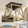 Round 13-inch Metal Wood Farmhouse 2-Light Ceiling Lamp – Semi-Flush Mount