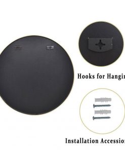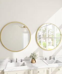 The Round 24-inch Circular Bathroom Wall Mirror with Gold Frame brings a blend of modernity and elegance to your walls. Its sleek gold metal frame not only adds style but also creates depth and dimension within your space. With its substantial size and minimalist design, this wall mirror is perfect for amplifying both natural and artificial light, thus illuminating various areas like bedrooms, bathrooms, hallways, entryways, living rooms, and offices. The mirror is inset within the frame, enhancing the overall sense of depth and dimension in your surroundings. It arrives at your doorstep with enhanced packaging, ensuring a safe delivery without damage. Crafted with a medium density fiberboard backing, this mirror reduces the likelihood of warping that can be associated with solid wood backings. This choice of material also enhances stability, offering a reassuring durability. For your convenience, this mirror, despite its size, is impressively lightweight. It arrives ready to adorn your wall straight out of the box, complete with the necessary mounting hardware.