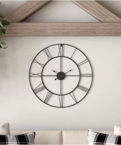 - Round 24-inch Metal Wall Clock with Roman Numerals