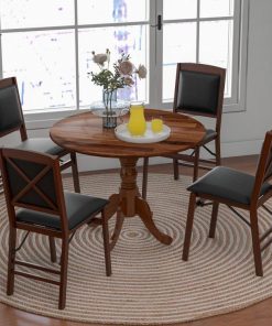 Crafted with natural rubber wood, the Round 40-inch Solid Wood Farmhouse Kitchen Dining Table in Medium Brown Finish is solid, not easy to crack and deformation-resistant for prolonged lifespan. Moreover, been through exquisite workmanship, it is smooth and burr-free. The walnut/natural wood finish and elegant curved trestle legs make this dining table a stunning addition to your home. Hence, the dining table can easily blend with various decor themes to improve the style of your living room, kitchen, and dining room. The rustic dining table comes with stable splayed legs, which ensures excellent stability. Additionally, each leg is equipped with adjustable feet pads, thus the dining room table will not wobble on uneven grounds. This dining table can accommodate up to 4 people, making it the perfect choice for small family gatherings. In addition, the thoughtful round corners are designed to avoid scratching or bumping. Equipped with detailed instruction and numbered parts, the assembly of the dining table will not trouble you. With a healthy paint finish, the dining table can be easily cleaned with a wet cloth.