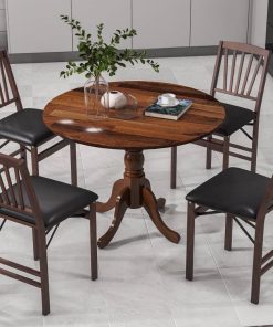 - Round 40-inch Solid Wood Farmhouse Kitchen Dining Table in Medium Brown Finish