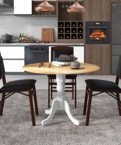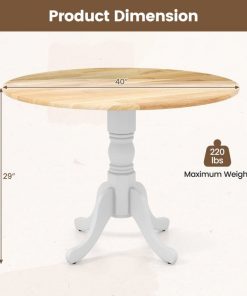• Round 40-inch Solid Wood Kitchen Dining Table with White Legs and Natural Top