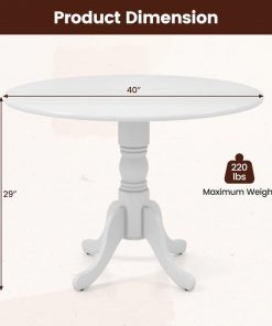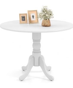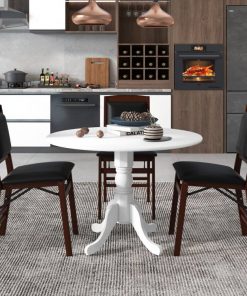• Round Solid Wood Kitchen Dining Table in White Farmhouse Wooden Finish
