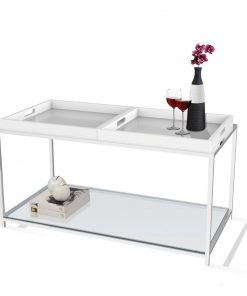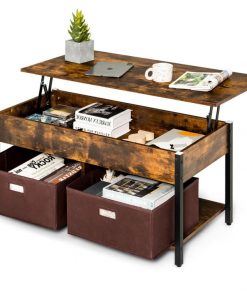 This Rustic FarmHouse Lift-Top Multi Purpose Coffee Table with 2 Storage Drawers Bins can be lifted to 23.5 inches providing a floating surface that is much closer to you for convenience. The metal lifting system gives reliable support while the anti-collision pads fitted underneath prevent slams. In addition to the lifting tabletop, the center table also offers 3 storage compartments open or enclosed to classified storage. Comes with 2 folding fabric drawers that can be removed to be used as storage bins separately. Features a sturdy construction that consists of premium MDF and heavy-duty steel and has adjustable foot pads.