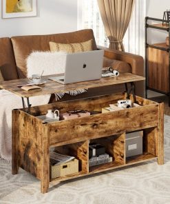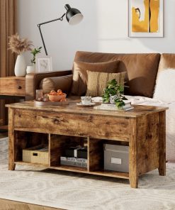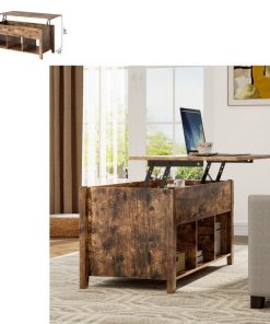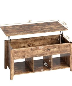 This sturdy mufti purpose Rustic Farmhouse Tan Wooden Lift Top Coffee Table is a great addition to any sitting space. The top of this rustic coffee table can be lifted up, with the durable solid lifting mechanism inside. The lifting mechanism is made of iron, ensuring long-term use. The springs at 2 sides help you to lift the top up and lower down, the height can be fixed at 24 inches to meet your various needs. Under the top, this table hides a large space to store your daily objects. You can put books, magazines, remote controls, keeping them in reach and away from dust. Comes with 3 open shelves at the bottom can collect blankets, toys, or snacks, improving space utilization.