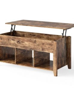 This sturdy mufti purpose Rustic Farmhouse Tan Wooden Lift Top Coffee Table is a great addition to any sitting space. The top of this rustic coffee table can be lifted up, with the durable solid lifting mechanism inside. The lifting mechanism is made of iron, ensuring long-term use. The springs at 2 sides help you to lift the top up and lower down, the height can be fixed at 24 inches to meet your various needs. Under the top, this table hides a large space to store your daily objects. You can put books, magazines, remote controls, keeping them in reach and away from dust. Comes with 3 open shelves at the bottom can collect blankets, toys, or snacks, improving space utilization.