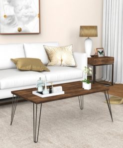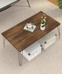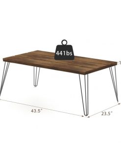 This Rustic FarmHouse Wooden Coffee Table with Modern Metal Legs is a perfect addition to any living room! The surface of this coffee table is made of high-quality wood painted with harmless spray paint. Rugged and durable metal legs give a strong support to whole table.