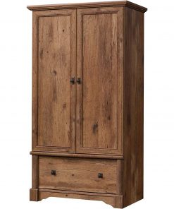 Versatile storage and elegant style where you need it with this Rustic Oak Drawer and Garment Rod Wardrobe Armoire. Behind the 2 large doors, this wardrobe armoire features a hidden storage area that provides you with room for all your essentials. This sturdy armoire includes a garment rod so you can conveniently hang and organize all apparel. Also features a storage drawer that opens and closes on smooth metal runners for easy access.