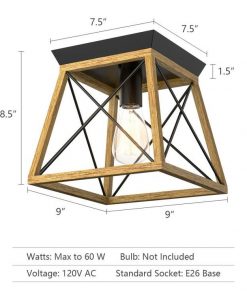 Add retro to your home décor with our flush mount ceiling light! This Rustic Wood Metal Glass Ceiling Light uses Standard E26 size Bulb – Not Included is made up of a premium iron frame, which is strong enough to last a long time. In addition, the blend of black and wood grain colors on the exterior gives it a retro yet refined look that will complement any interior application, including living room, dining room, bedroom, kitchen, hallway, basement and more. Moreover, open design increases light transmittance to ensure a high-quality light source. What’s more, it works with Edison bulbs, incandescent bulbs, LEDs, CFL bulbs and compatible dimmer switches to provide flexibility. If you are looking for such a product, don’t hesitate to place an order!