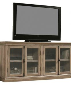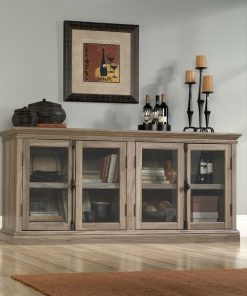 Salt Oak Wood Finish TV Stand with Tempered Glass Doors – Fits up to 80-inch TV