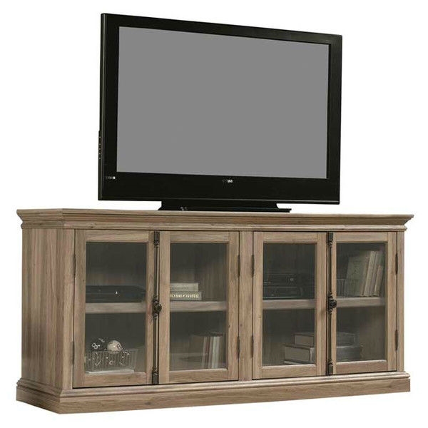 • Salt Oak Wood Finish TV STand with Tempered Glass Doors – Fits up to 80-inch TV