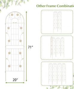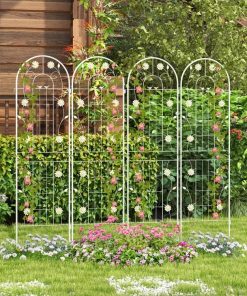 This Set of 2- 6-ft Galvanized Steel Outdoor Garden Trellis in White Metal Finish is constructed of galvanized steel, ensuring unrivaled sturdiness and rust resistance to hold heavy plant for longer time. The trellis features 10.5″, 11″ long legs, allowing for effortless insertion into the ground, providing a stable foundation. With impressive heights of 71″, the metal trellis offers an expansive area for your climbing plants and vines to reach new heights. By providing an abundance of vertical space, your plants can thrive as they eagerly stretch towards the sun’s nourishing rays. Apart from being used as a plant support for climbing plants. The 2 pack trellis set can be combined with a garden fence, ensuring the protection and privacy of your cherished plants. Plus, you can connect 2 or more trellis in an A-shape frame for growing cucumbers or other climbing vegetables. Designed with enchanting birds, flowers and leaves, the tall garden fence will effortlessly add a touch of timeless elegance and retro charm to your garden, lawn, or yard. Moreover, you have the freedom to arrange more trellises to different layouts according to your unique requirements. Coming with complete components and a detailed instruction manual, the assembly process of the wire lattice grid panel is a breeze. Besides, the 2 pack fence trellises are designed with an effortlessly interlocked connector, allowing for quick setup.