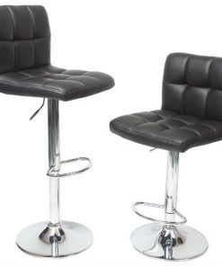 - Set of 2 – Adjustable Height Bar Stool with Black Faux Leather Cushion Seat