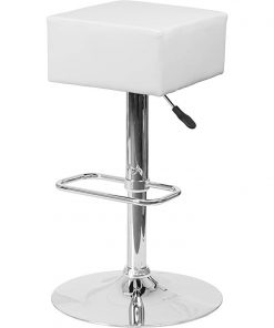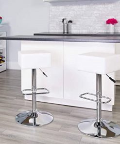 This Set of 2 Backless Square Swivel Barstool with White Vinyl Seat is a swivel chair with a sturdy chrome frame base and 6.5 inches of thick foam padding . The stool is height adjustable.