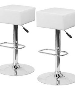 This Set of 2 Backless Square Swivel Barstool with White Vinyl Seat is a swivel chair with a sturdy chrome frame base and 6.5 inches of thick foam padding . The stool is height adjustable.