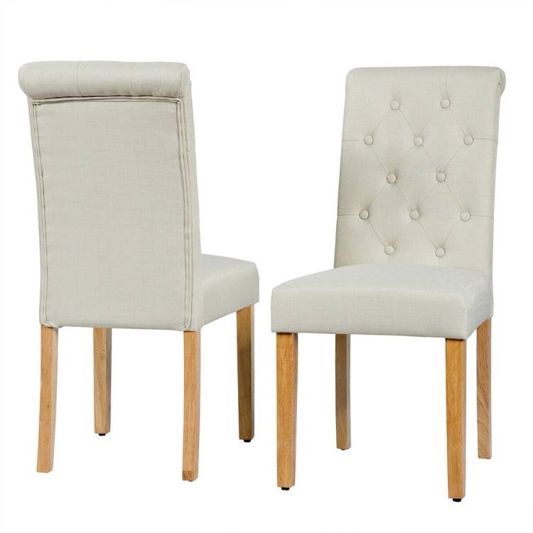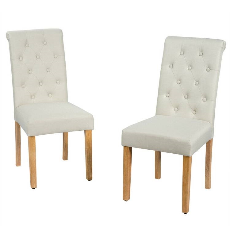 - Set of 2 Beige Linen Button Tufted Dining Chair with Wood Legs