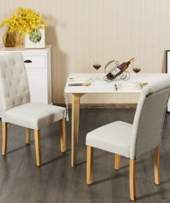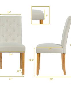 These chairs are the key to perfectly complementing your dining table so you can enjoy every meal with great comfort. This Set of 2 Beige Linen Button Tufted Dining Chair with Wood Legs features an extra comfy cushioning that will help you to relax and enjoy meals or just relaxing. The linen fabric not only provides superior breathability, but also expand life span with great durability. Their high, curved backrest are designed to relieve back fatigue and provide extra support. The sturdy wood, solid construction, and adjustable foot pads result in an overall stable structure that remains secure and does not wobble. No need to worry about assembly as the simple assembly instructions will have these chairs set up in no time. If you are looking for such dining chair, why not try?