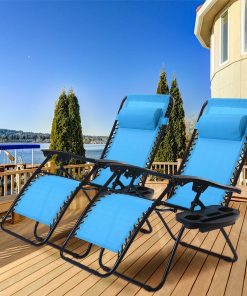 - Set of 2 Blue Folding Outdoor Zero Gravity Lounge Chair Recliner