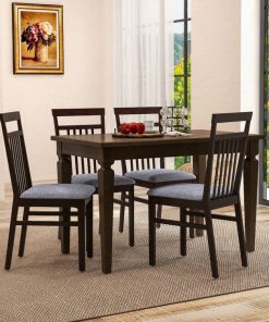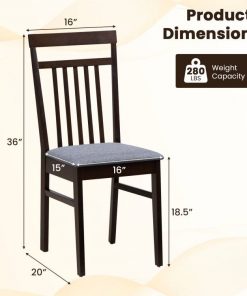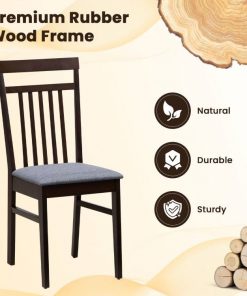 - Set of 2 – Classic Sturdy Wood Dining Chair with Grey Upholstered Seat Cushion