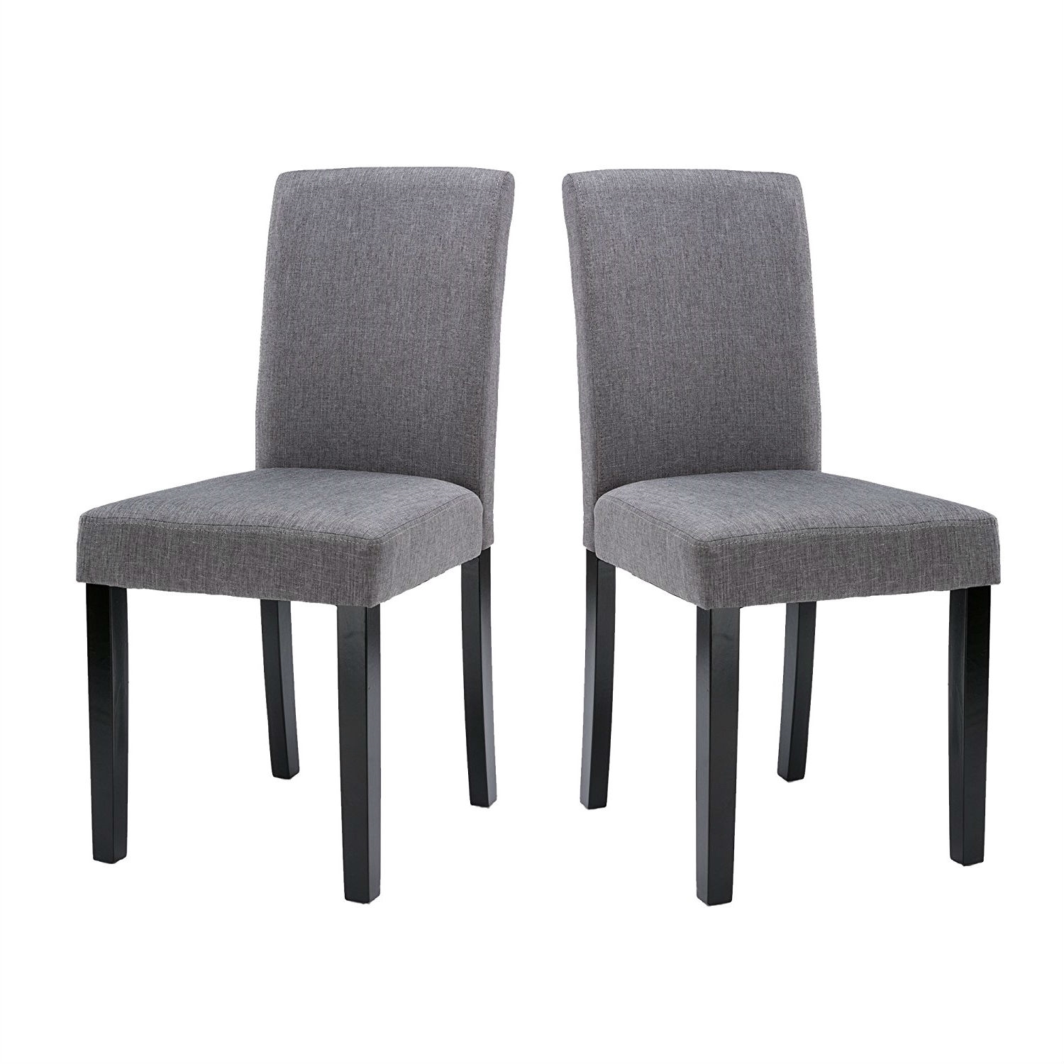 Set of 2 – Grey Fabric Dining Chairs with Black Wood Legs
