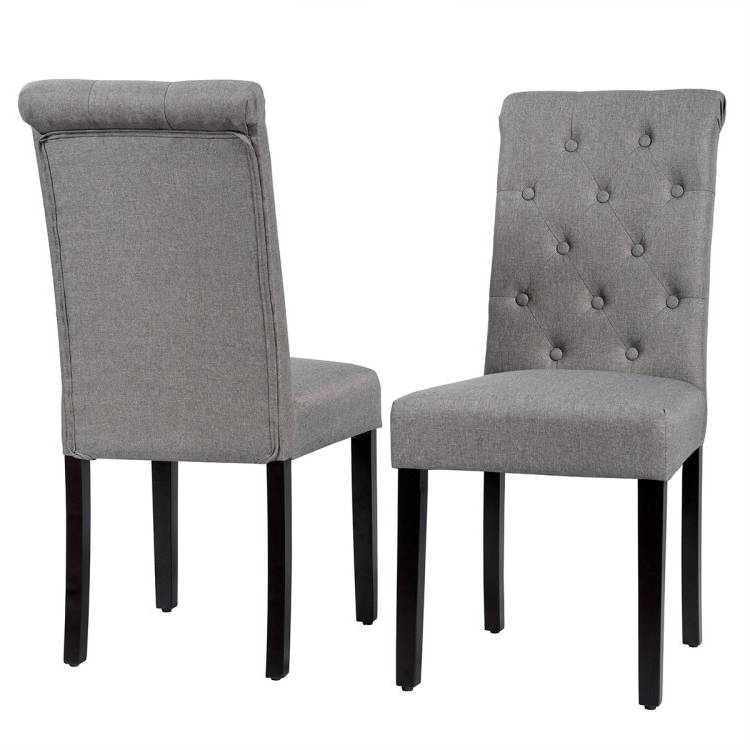 - Set of 2 Grey Linen Button Tufted Dining Chair with Wood Legs
