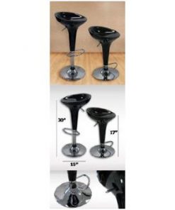 This Set of 2 Ice Cream Scoop Style Barstools in Black will add high style to your home, office, or restaurant/bar. Painted to a glossy finish and features a bright chrome base and footstool with matching colored collar above the base. Each chair swivels and adjusts to bar and counter height. Gas operated pump is tested to 100,000 operations. Adjustable seat height of 22″-30″.