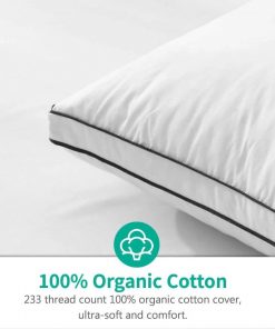 This Set of 2 King size Gusseted Goose Down Feather Pillow in Organic Cotton Fabric is made of 100% down-proof cotton fabric and premium down duck feather, classic down feather gusseted bed Pillow Insert is a breathable, durable, and skin-friendly down alternative pillow. Perfect for anyone who wants to own a pillow for 10 years or more. Filling with the softest and smallest feathers by medium density, Our down feather pillow insert is extra soft while still providing suitable support for optimum neck and shoulder comfort, so even sensitive sleepers can enjoy a cozy sleep. Perfect for most types of sleepers such as back or stomach sleepers. Quilted with 1” gusseted and decorative black piped edges, this elegant pillow can match your bed in any style. Compliant to RDS, Downpass, and OEKO-Tex Standard 100. We’re committed to making products better for you, high cleanness, odorless, cruelty-free, and sustainable. It is a good choice for family and friends, Hurray! Upon receipt, you can clap gently your pillow to recover its full shape. Recommended to regularly air them in the sun for 1~2 hours for healthier use. Recommended to use with pillowcase/sham/pillow cover. Machine washable and dryable. The pillow insert with the 233-thread-count organic cotton fabric will keep you feeling fresh all night long. Premium feathers & down filled with responsibly sourced feathers & down, soft and breathable, if you like to hug into your pillow these are for you! Soft and puffy, these gently supportive pillows feel pleasingly malleable.