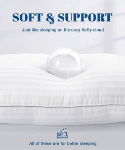 This Set of 2 Machine Washable Down Alternative Bed Pillow with Cotton Cover – King would be a great addition to your home. Bed Pillows for Sleeping 2 Pack, Hotel Collection Super Soft Down Alternative Microfiber Pillows, for Side and Back Sleepers. Soft & Breathable Cotton Cover Our pillowcase is made of high-quality cotton that is soft and breathable, providing a cozy and comfortable sleeping experience. The cotton cover also helps to regulate body temperature, keeping you cool and comfortable throughout the night. Hypoallergenic Material The down alternative fill is a great option for those who are sensitive to traditional down feathers, and is ideal for people with sensitive skin. OEKO Standard 100 Certified Our pillow is tested under OEKO Tex Standard 100 for harmful chemicals and allergens. The pillow has the legal standard certification that can be officially sold in the United States. You can rest assured they are safe for long-term use. User’s guide Machine washable and dryable. The sleeping pillows are individually sealed and packaged. Please leave the pillow for a few hours to get full looseness before using it. It is recommended to dry it under the sun for 1~2 hours regularly for healthier use.