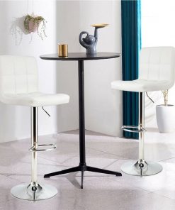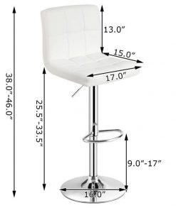 These Set of 2 Modern Adjustable Height Bar Stool with White PU Leather Swivel Seat combine modern and classic styles that are perfect for your restaurant, bistro, coffee shop, patio, home kitchen, or any other decorative theme. Both the base and the footrest are made of durable metal, which makes the bar stool have a strong load-bearing capacity and are easy to clean. Fluid lines and square design will immediately enhance the decoration of your home bar-restaurant. The side pneumatic handle can adjust the height of the bar stool from 25″ to 33″ making it suitable for people of different heights. The 360-degree swivel design can help you move your body around. The high resilience sponge cushion seat can give you a comfortable sitting experience. In addition, a semi-circular footrest that is durable and stable provides a resting place for your feet and legs. Bar stools with a rubber ring increase friction with the ground, which not only protects the floor but also prevents slipping.