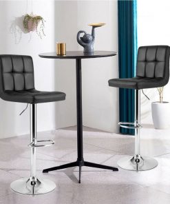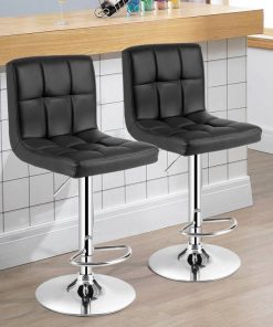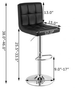 These Set of 2 Modern Adjustable Height Bar Stools with Black PU Leather Swivel Seat combine modern and classic styles that are perfect for your restaurant, bistro, coffee shop, patio, home kitchen, or any other decorative theme. Both the base and the footrest are made of durable metal, which makes the bar stool have a strong load-bearing capacity and are easy to clean. Fluid lines and square design will immediately enhance the decoration of your home bar-restaurant. The side pneumatic handle can adjust the height of the bar stool from 25″ to 33″ making it suitable for people of different heights. The 360-degree swivel design can help you move your body around. The high resilience sponge cushion seat can give you a comfortable sitting experience. In addition, a semi-circular footrest that is durable and stable provides a resting place for your feet and legs. Bar stools with a rubber ring increase friction with the ground, which not only protects the floor but also prevents slipping.