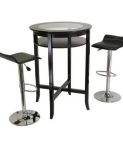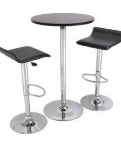 Drink coffee over the morning paper in one of these two Set of 2 Modern Air-Lift Adjustable Bar Stools with Black Seat. Great for use at a breakfast nook, a bar table, or home bar, the sets height adjusts from 25 to 30 inches with a tug to the side handle of each stool. The minimal seatback and lack of armrests endow the stools with a discrete profile for storage under countertops, while giving them an uncomplicated, sophisticated look that flatters modern décor. Supporting up to 200 pounds, each stools sleek chrome frame provides a tubular foot rest for comfort. Faux leather fabric covers the chairs padded seat, which swivels for user convenience. To clean the stools, wipe with a soft, damp rag. The stools require simple home assembly. Once assembled, each stool measures 15 inches wide by 15 inches deep by 25 inches high. The stools weigh 31 pounds upon shipping.