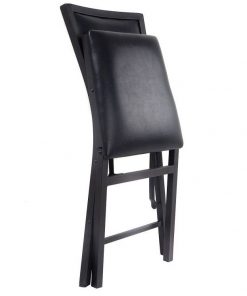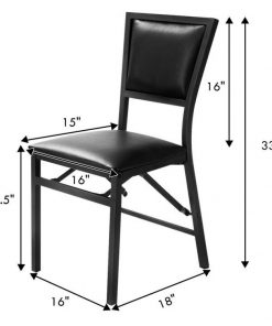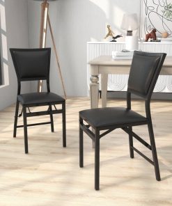 - Set of 2 – Modern Black Metal Folding Dining Chairs with PU Leather Seat Cushion