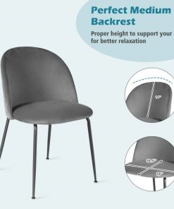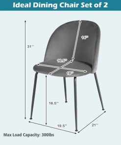 This Set of 2 Modern Grey Velvet Upholstered Dining Chair with Metal Legs would be a great addition to your home. In general, you will receive 2/4 kitchen side chairs in total, which is adequate for daily use in the dining room, living room, reception room, etc. Plus, since each chair is independent, it is feasible to place them individually or in combination for gatherings, work or makeup. Each leisure chair comes with a 14″ high backrest, designed to closely fit back curves and offer ergonomic support. Thus, fatigue from sedentary will be highly relieved. More, the 18″ x 16.5″ (L x W) seat offers a comfy sitting area and is wide enough for you to lean on the backrest in the desired position. Inside, each dining chair is fully filled with premium sponge, which comes with high density for non-deformability and comfy touch. At the same time, skin-friendly velvet covers both the backrest and seat, offering a soft feel like a baby’s skin and ideal breathability to avoid stuffiness. Thanks to a hidden metal base, each accent side chair is reinforced to gain a great load capacity of 300 lbs. Moreover, all strong legs are fitted with thickened protective pads. Thus, accidental sliding won’t happen again, and unwanted scratches on the floor will be highly avoided. Displaying a modern design, the dining chair set serves as a stylish decoration in your home as well. More conveniently, its installation is very simple and takes a short time. However, color differences may occur between different light and monitors.