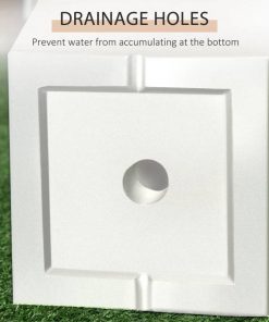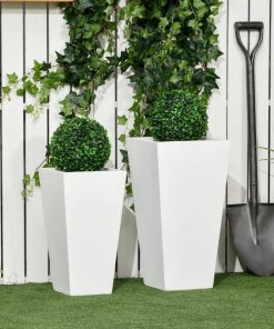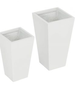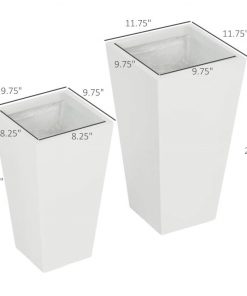 Grow Thyme!! This Set of 2 Modern Outdoor Flower Pot Planter Set in White makes a subtle yet functional accent piece with a stone-like look and modern shape. Extra tall design helps the roots of fiddle trees, fig trees, ferns, and much more. At home on the porch or patio, our outdoor flower pot has a nesting doll design, piquing interest wherever they’re placed, and allowing for easier storage when the season is done. Stop worrying about waterlogging; the bottom drainage holes remove excess rain, managing moisture levels and keeping your flowers, trees, or other plants comfortable. Made of Magnesium Oxide, giving them a matte finish and stone-like look. This material doesn’t mind UV or rain, allowing for a more durable and lightweight planter overall. Larger Planter Dimensions: 11.75″ L x 11.75″ W x 21.75″ H. Smaller Planter Dimensions: 9.75″ L x 9.75″ W x 17.75″ H. Weight Capacity: 220 lbs., 154 lbs. No assembly required.