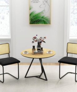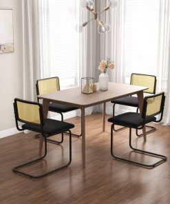 - Set of 2 – Modern Mid-Century Black Dining Chair with Beige Rattan Backrest
