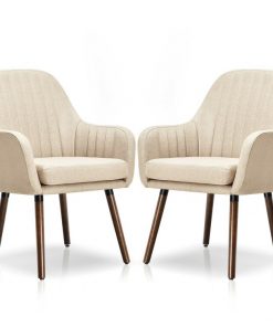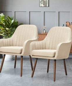 Sit back and relax in style this Set of 2 Retro Linen Accent Chair w/ Espresso Rubber Wood Frame – Off White. These chairs are well constructed with premium natural rubber wood. 4 sturdy rubber wood legs offer reliable support, which can support up to 264 lbs. The backrest features a curved design to perfectly fit the line of the human body. Has ergonomic armrests and non slip pads to ensure comfort with no movement or floor scratches. All parts are included for easy assembly. It only takes minutes to assemble the chair with the instruction.