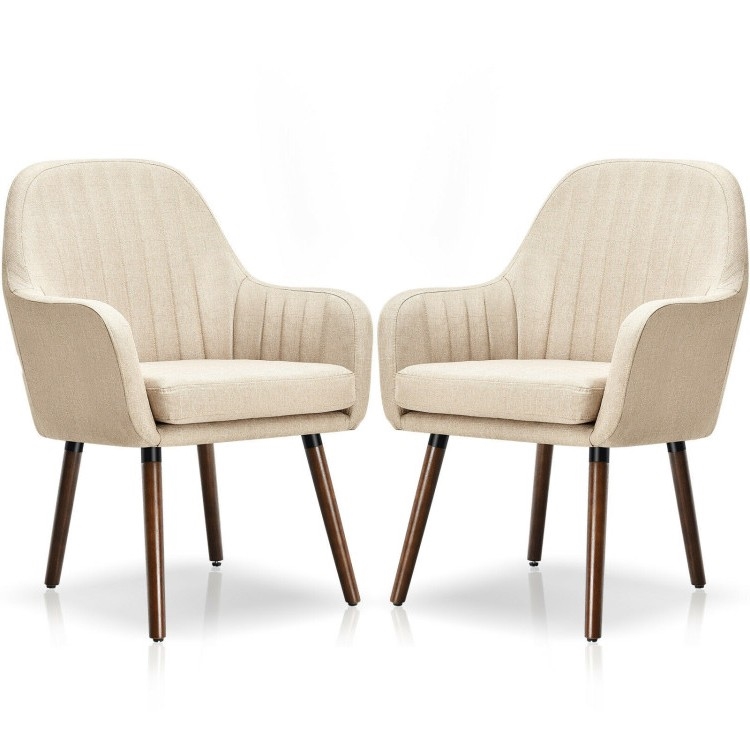 Set of 2 Retro Off-White Linen Upholstered Accent Chair with Stylish Wood Legs