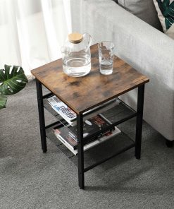 • The robust iron frame of the side tables and the rustic-style particleboard form a high-quality combination that can hold up to 44 lb