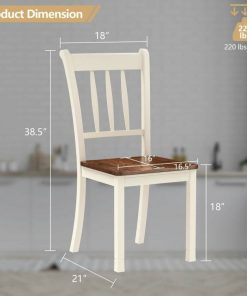 - Set of 2 Solid Wood White Mission Style Armless Dining Chair with Brown Seat