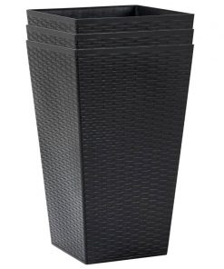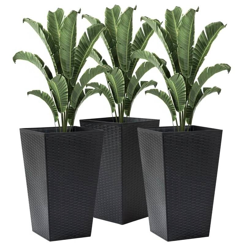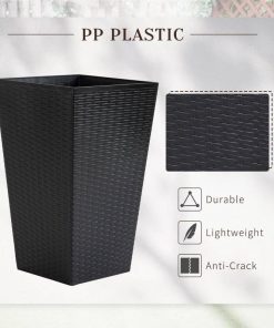 Set of 3 – Black Faux Rattan Plastic Tall Large Flower Pots