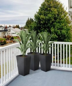 This Set of 3 – Black Faux Rattan Plastic Tall Large Flower Pots give your space a classic modern touch! The rattan-style plastic makes it easy to get plants settled inside and allows you to drill holes at the bottom for water drainage if they are placed outside. Add some new life to any backyard, living, or office space with this set of 3 flower boxes.