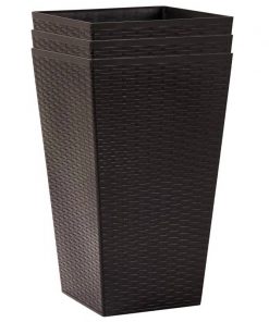 Set of 3 – Brown Faux Rattan Plastic Tall Large Flower Pots