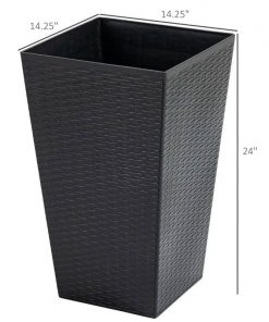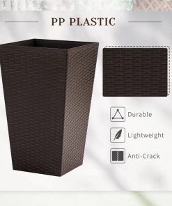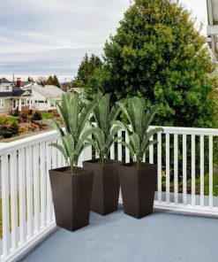 This Set of 3 – Brown Faux Rattan Plastic Tall Large Flower Pots give your space a classic modern touch! The rattan-style plastic makes it easy to get plants settled inside and allows you to drill holes at the bottom for water drainage if they are placed outside. Add some new life to any backyard, living, or office space with this set of 3 flower boxes.