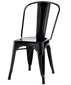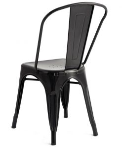 A classic touch is added to your kitchen decor with this Set of 4 Indoor Outdoor Black Metal Stacking Bistro Dining Chairs. Each chair features a high back which offers durable support needed down the center of your spine to help guard against fatigue and aches. Simple and practical, you can apply the set of chair into anywhere you can imagine, such as bistro, living room, dining room and your kitchen.