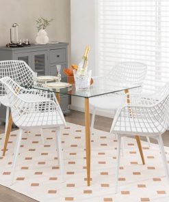 With smooth line and mesh pattern, the Set of 4 Modern Mid-Century White Mesh Dining Chair with Ergonomic Backrest will a perfect addition to different rooms. Meanwhile, each chair can be used as your dining chair, leisure chair or office chair, which can meet your different needs. The reclining backrest can wrap your body perfectly for spine protection and waist relaxation, offering you “mother-like” hug. Besides, the wide backrest also features airy hollow design to ensure a cool and comfortable feeling when you lean on the back of this chair. Measuring 18.5″(L) x 17.5″(W),the comfortable seat provides you with enough resting area. Apart from that, the seat with a curved surface fits well with your body curve and greatly supports your hip as well as thighs to relax muscles. Equipped with powder-coated metal legs, each chair allows for excellent wear resistance, outstanding stability and high load bearing capacity, Plus, anti-slip foot pads enhance overall sturdiness and protect the floor from being scratched. Coming with a clear user manual and complete hardware, the dining chair can be easily installed in a few steps. You won’t get stuck into assembly. And the finished dimension of each chair is 22.5″ x 21″ x 34″(L x W x H). Its weight capacity is 265 lbs.