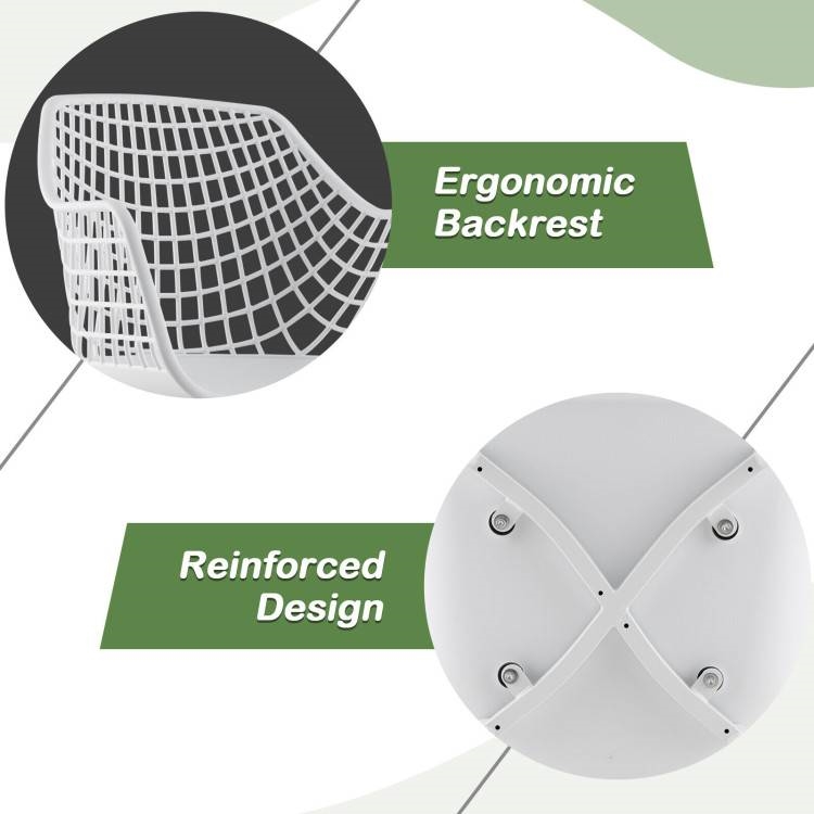 - Set of 4 Modern Mid-Century White Mesh Dining Chair with Ergonomic Backrest