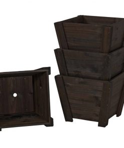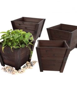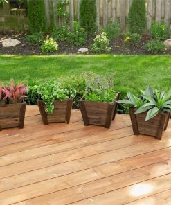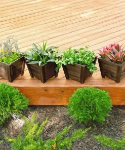 Showcase your prized plants with this tapered wooden planter set. Great for when you need to scale down without shrinking on style. Easily liven up gardens, patios, or function as green-belt space dividers. Perfect for indoor or outdoor spaces. Comes in set of four. Crafted of solid wood harvested from the Cypress tree family with decay resistance similar to Western Red Cedar.