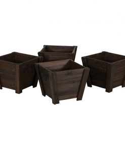 Showcase your prized plants with this tapered wooden planter set. Great for when you need to scale down without shrinking on style. Easily liven up gardens, patios, or function as green-belt space dividers. Perfect for indoor or outdoor spaces. Comes in set of four. Crafted of solid wood harvested from the Cypress tree family with decay resistance similar to Western Red Cedar.