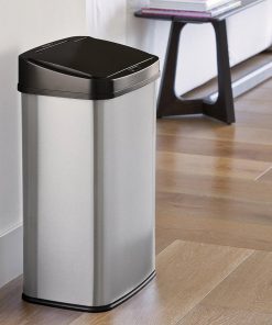This 13-Gallon Stainless Steel Kitchen Trash Can with Motion Sensor Lid is ideal for the kitchen, breakroom, or restroom. Place your hand in sensor range and the lid will automatically open for you. When out of sensor range the lid will automatically close. No need to touch the trash can. Ring liner will hold and conceal the trash bag within the trash can.